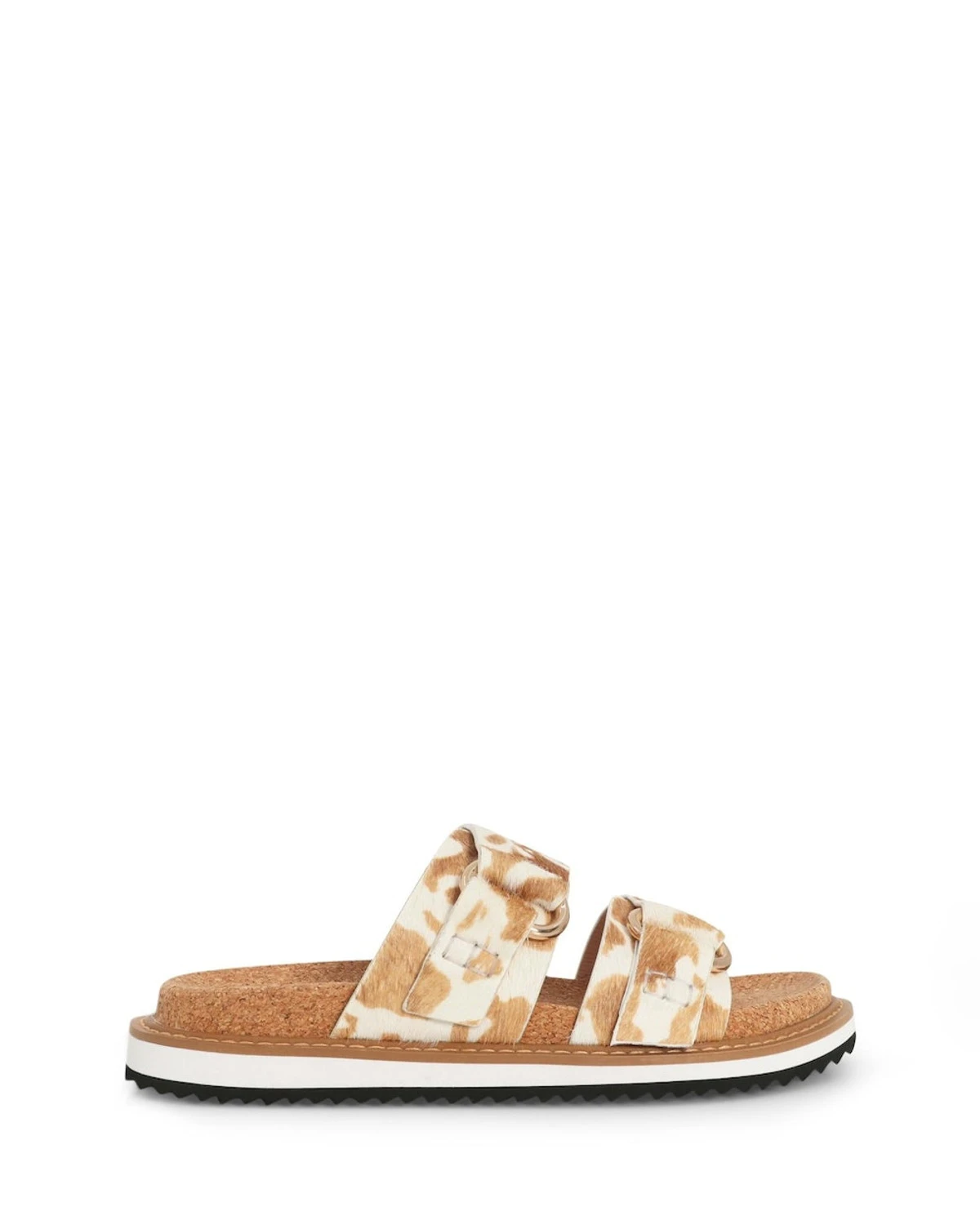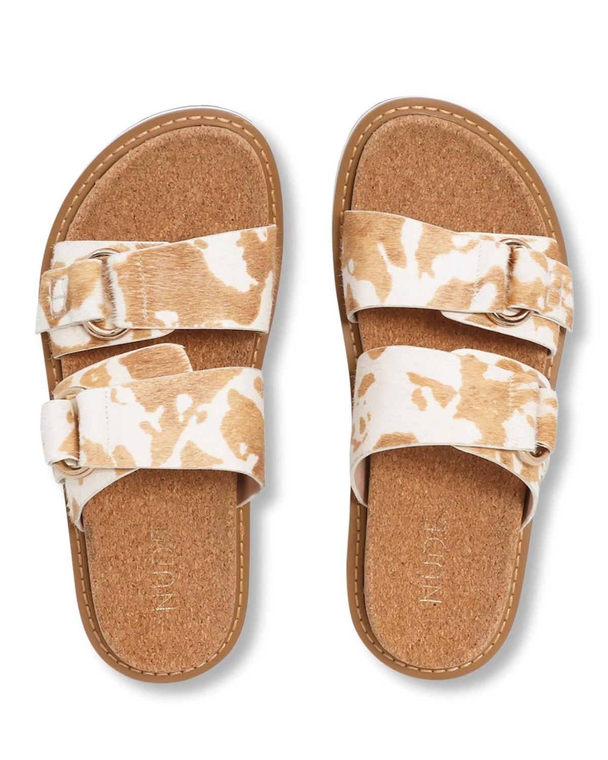 Allow us to introduce our newest addition, the Bambi sandal, designed with your comfort in mind. This charming design features a soft, rounded toe and two straps that provide both unmatched comfort and style. The Bambi sandal is also crafted with a cork sole, ensuring a comfortable experience even on hot summer days. Pair it effortlessly with a maxi dress or linen trousers to create the perfect summer outfit.