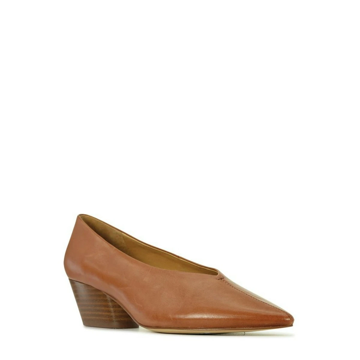 - Leather stack heel