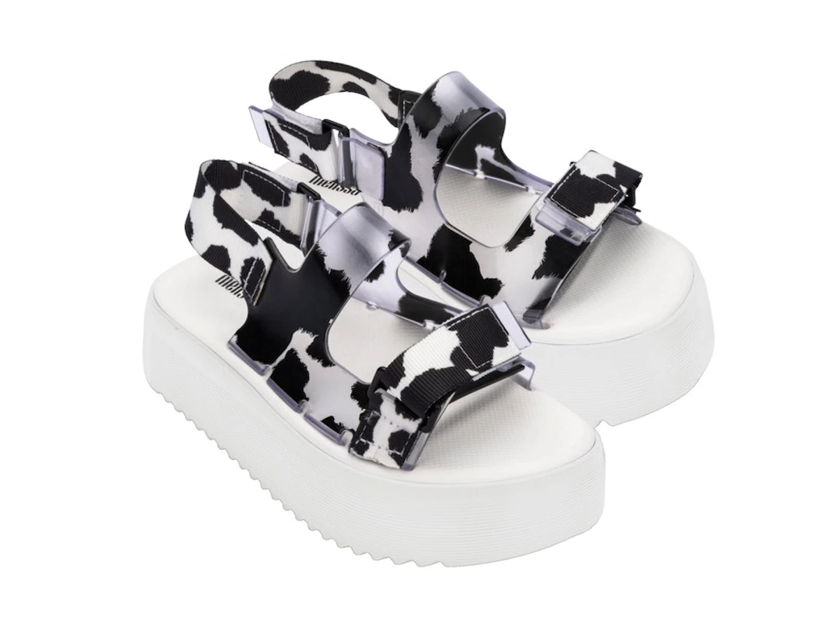 For those who love to live the high life, the Melissa Brave Platform offers a new level of fashion fun. It is a high-heeled sandal with an ultra-thick ridged platform sole. Its upper is formed by two medium-sized straps with velcro closures and has another fabric strap that wraps the heel and also has velcro closure.Â