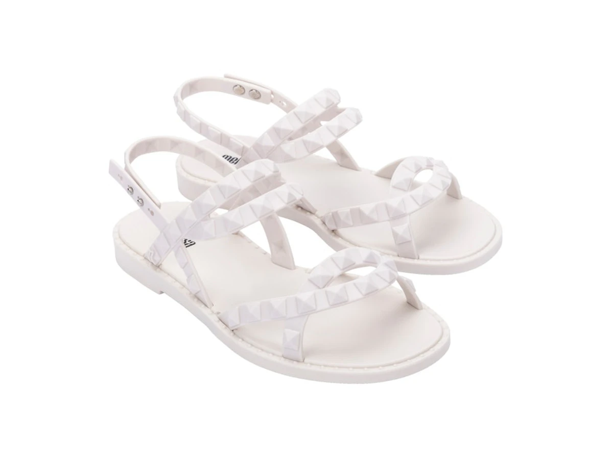 Tell me about it, stud. This season is getting off on a new foot, with Melissa providing high-fashion trends like studs, all in sustainable jelly. The Melissa Lucy sandal has it all – lightweight practicality with fashionable studded straps that zig-zag aver the toes and around the heel.