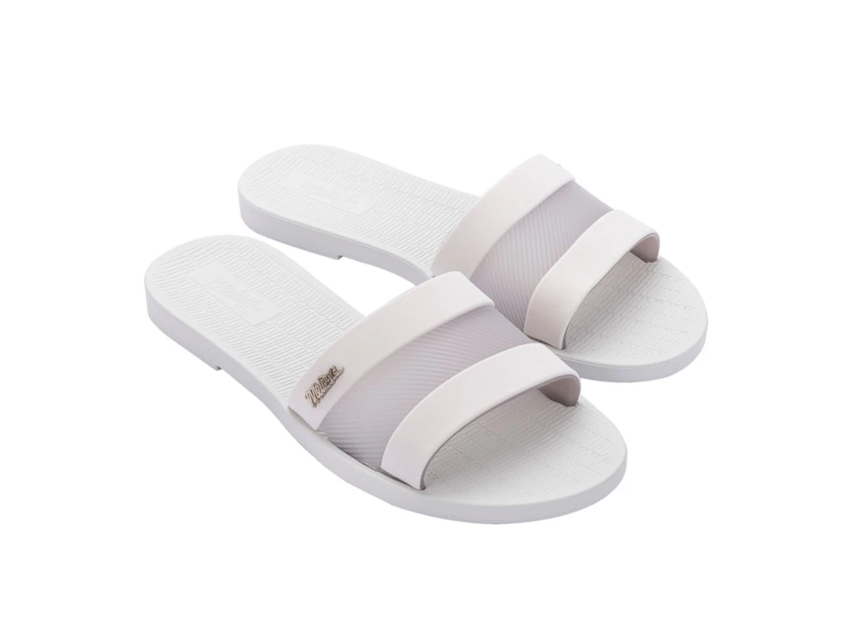 Don’t call this a slide, it’s the Melissa Hollywood slide, darling! With a sole of embossed, ultra-comfy foam and a Melflex upper, there’s a metallic Melissa logo to flash in the Summer sun like a total starlet. The upper plays with transparency, offering a slimline, sophisticated slide for home and holiday.