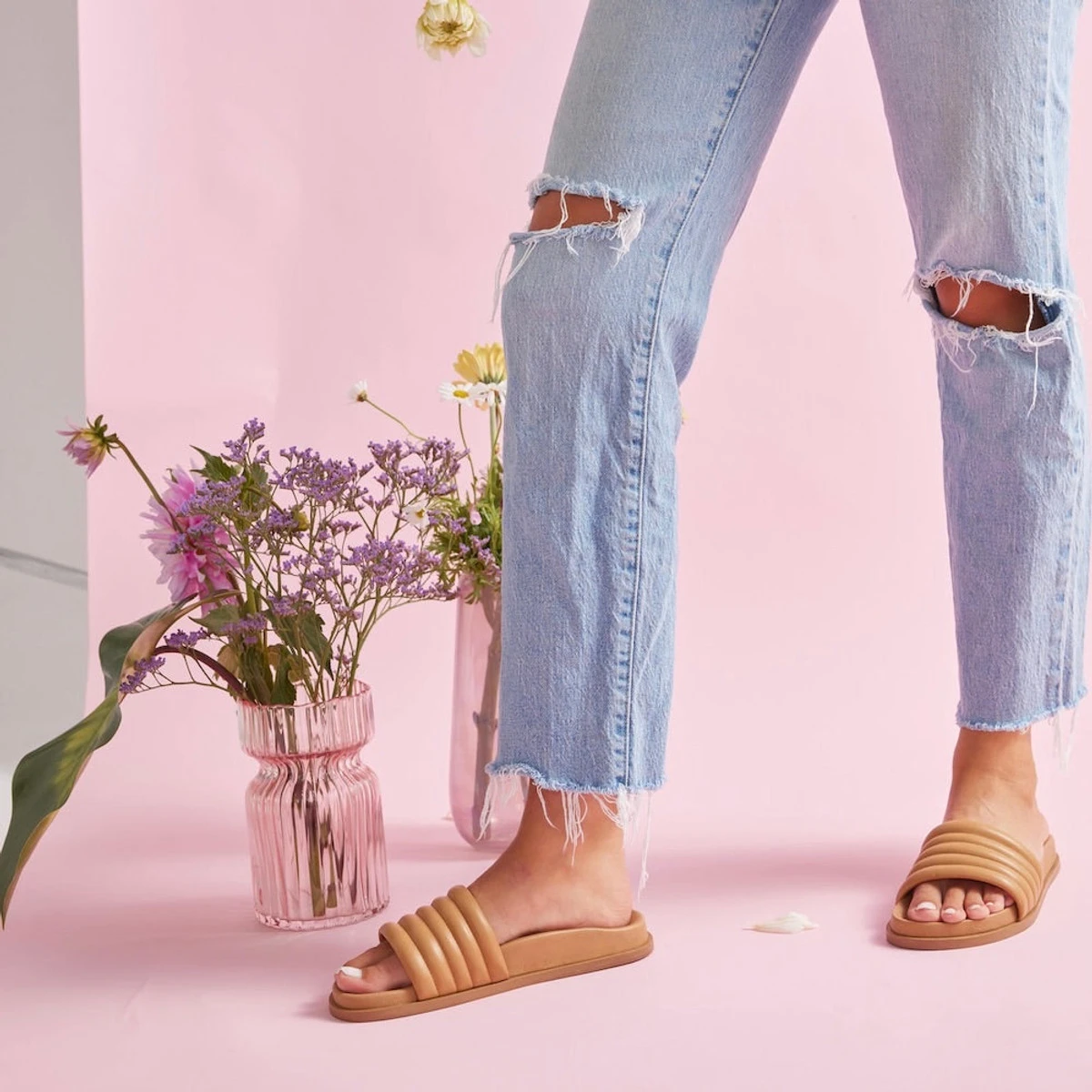 Easy to wear and style, these slide sandals are perfect for the casua, trendy woman. They feature distinctive round toes that give them a chic and contemporary look and a stitched, padded upper that add an interesting visual element to the simple design.