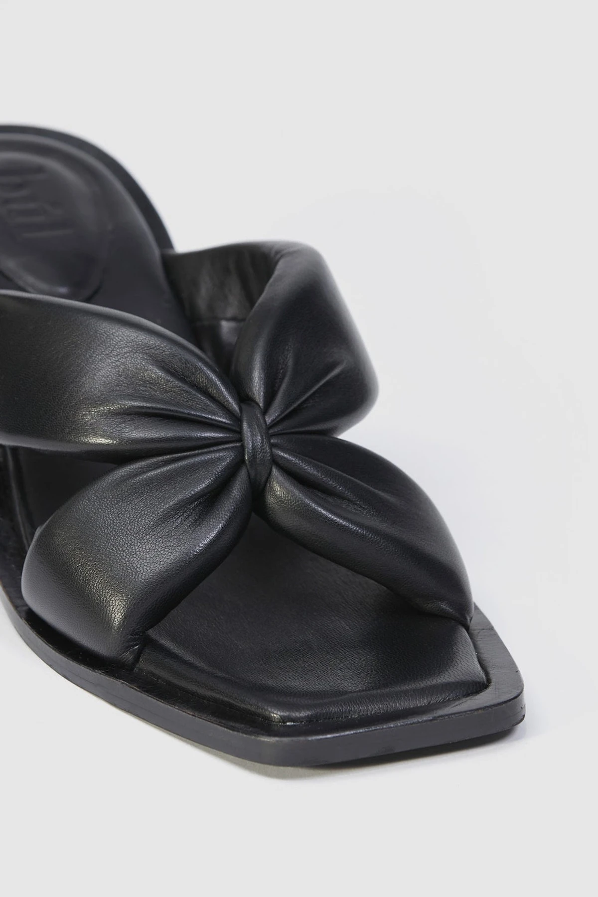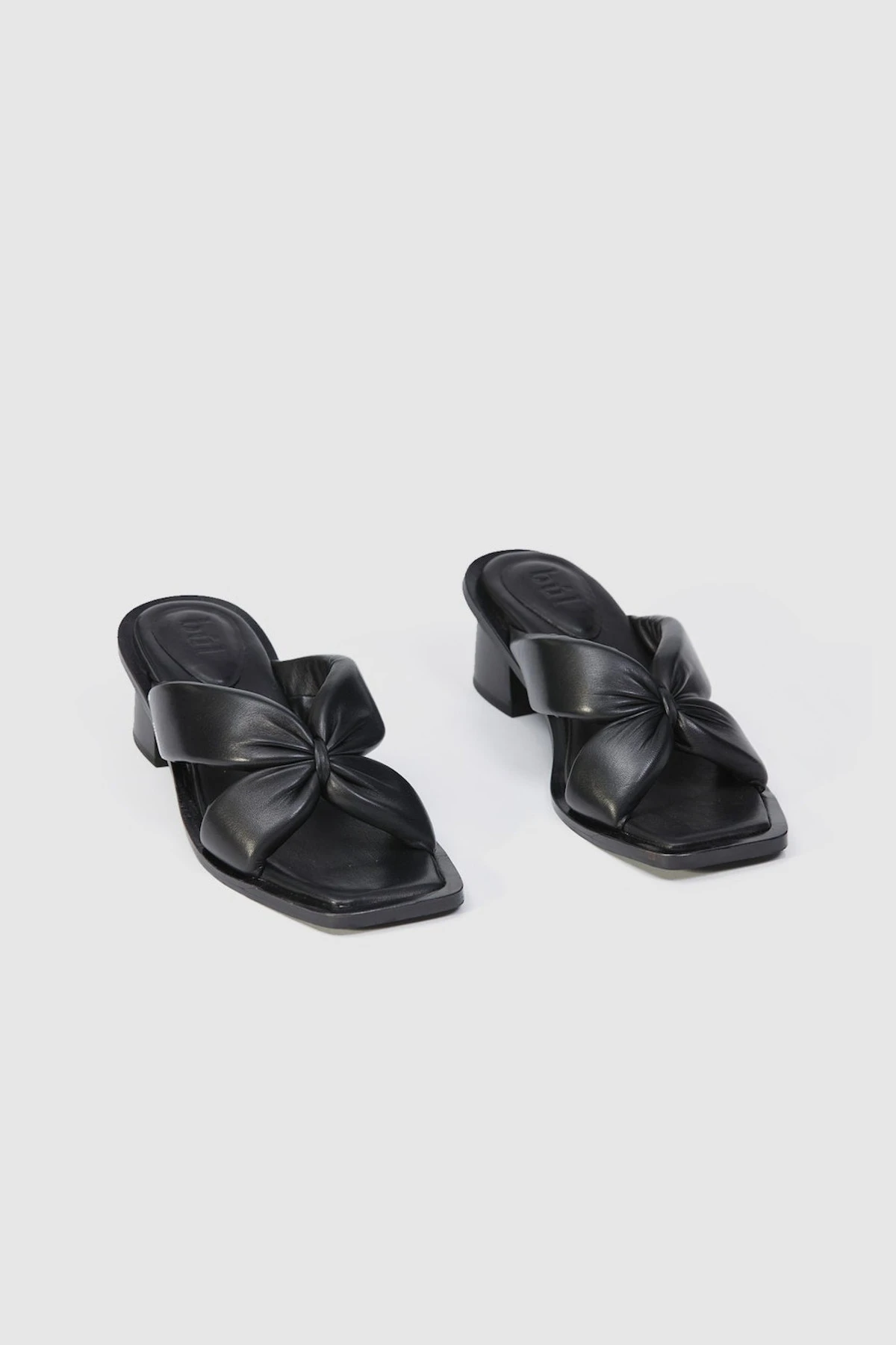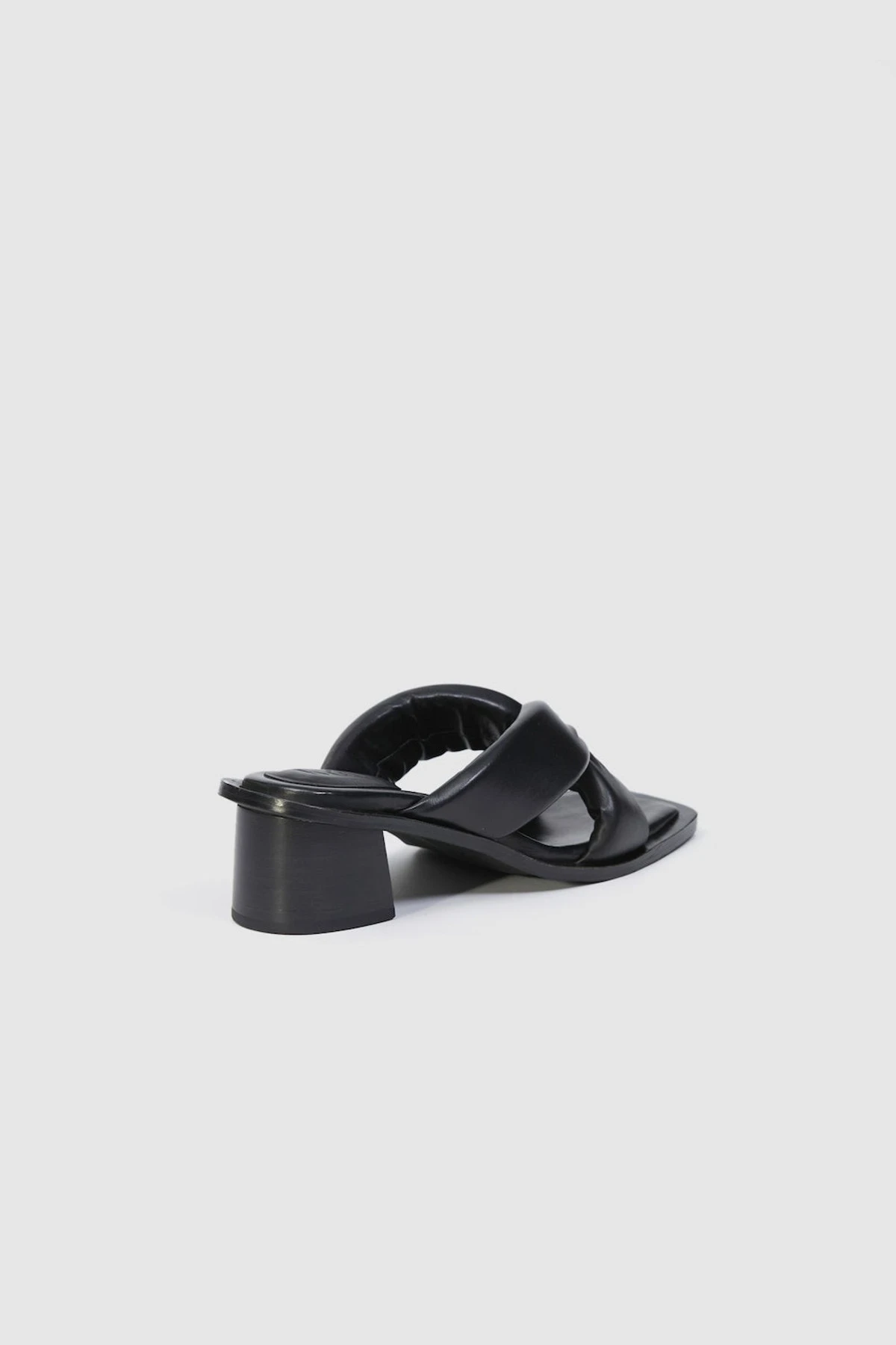 The Roca Midi is a square open-toed midi heel with ultra-comfy padded cross-over leather straps, finished with a square wooden heel.